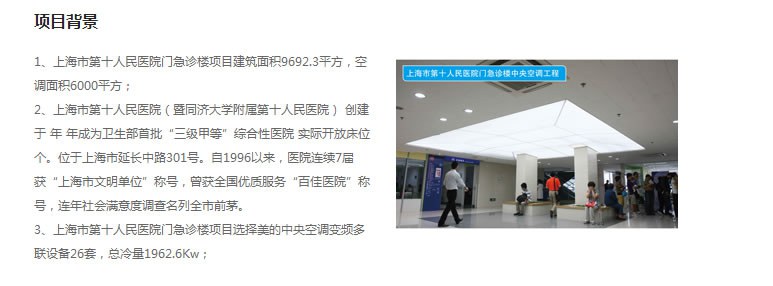 1、解放軍第105醫院項目建筑面積1W平方,空調面積8000平方米,我方應用為多聯機V4+機組;