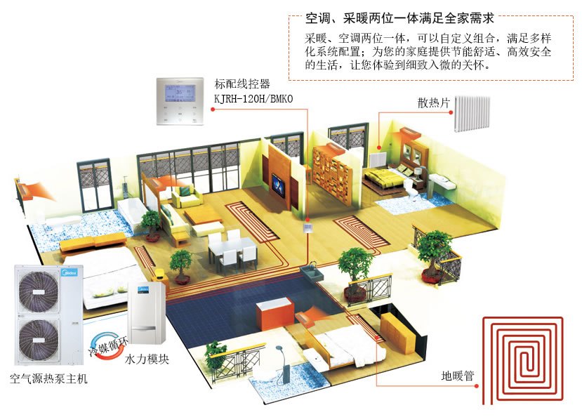 隨著生活水平的提高,人們對室內環境的要求不斷提升。傳統的氟系統空調在冬天送風供暖舒適度不理想,采用其它的采暖設備,又會增加空調系統的復雜性與成本。美的暖家空氣源熱泵兩聯供機組可以解決這個痛點,一套系統可以輕松實現智能制冷與舒適供暖。