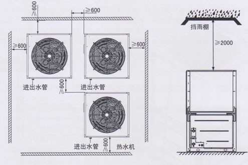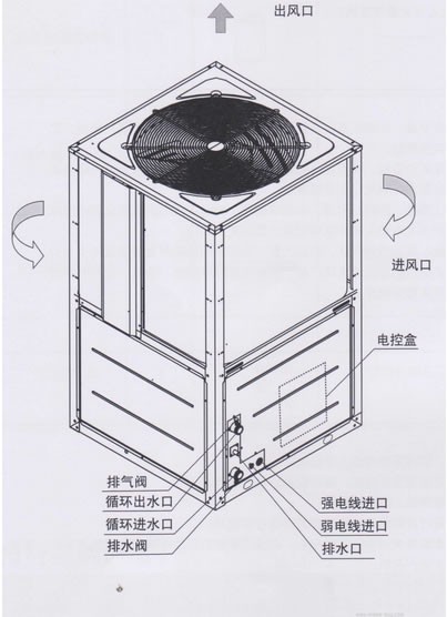 2、不要將機組安裝在室內,如確需室內安裝,則要求排風口距樓層天花板最小距離大于2米,并有足夠的空氣流量和通風設施。