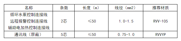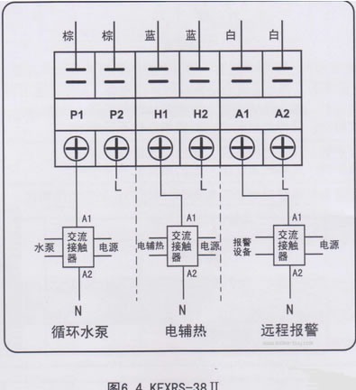 電輔熱、循環水泵、遠程報警信號均為無源開關信號,不能直接驅動負載,且控制接觸器的電流不應超過1A。