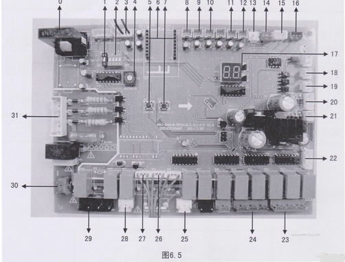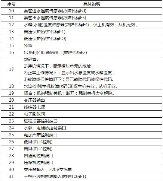 ·水流開關、水泵、輔助電加熱器只與被設定為0號地址的主機控制器相連。
