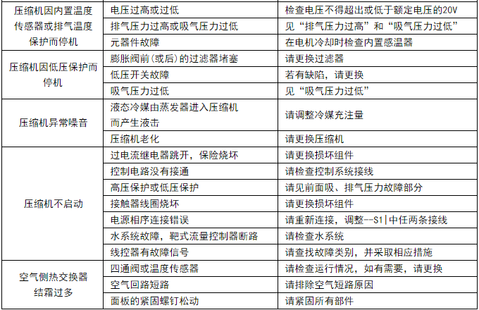 5)冬季環境溫度在零度以下時,嚴禁切斷電源,否則機組防凍保護會失效。