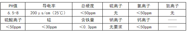 14)機組適應水質標準如下。