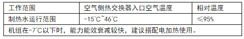 2)為了保持良好的性能,請在下面的室外溫度條件下運轉機組: