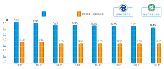 國內首款能效達7.5的多聯機產品,遠超國家一級標準108%