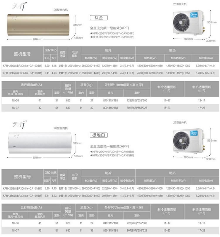 商品名稱:新品上市 美的KFR-26GW/BP3DN8Y-CA100(B1) 大1匹 壁掛式 全直流變頻 冷暖空調 天行