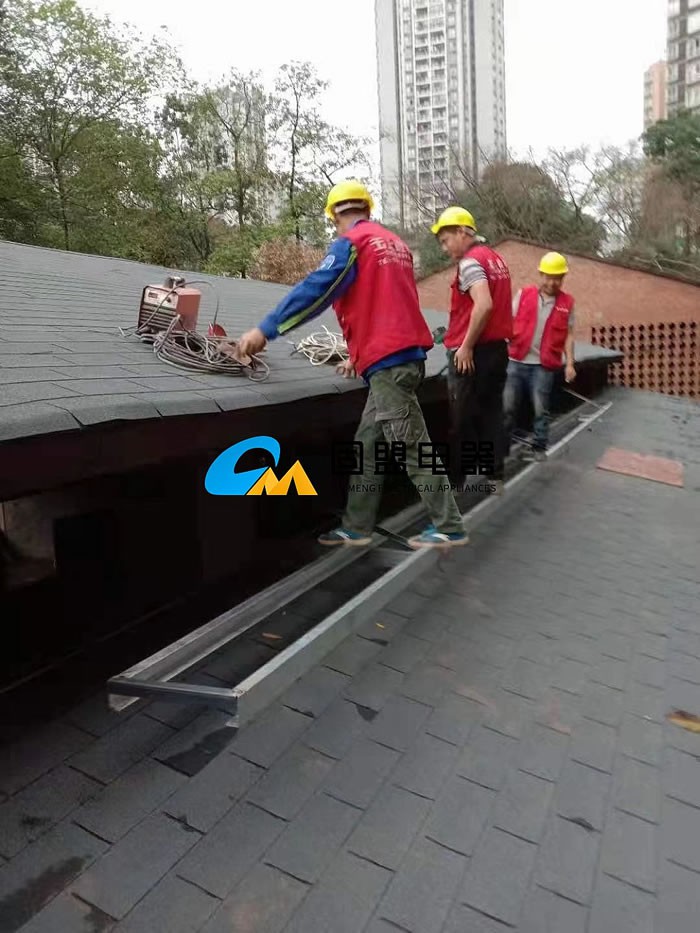 了解到現場施工空調區域房屋結構為木制斜屋頂,即不能破壞原有結構,也沒有安裝牢固支撐點, 因為現場施工現場條件有限,我司美的售后服務人員以及工程師克服現場各種安裝難點來滿足空調使用效果與空調制冷效果的正常發揮,我司經過現場溝通與設計溝通最終采用根據現場焊接鍍鋅槽鋼異型支架,與房梁空調支架制作來安裝空調與新風。