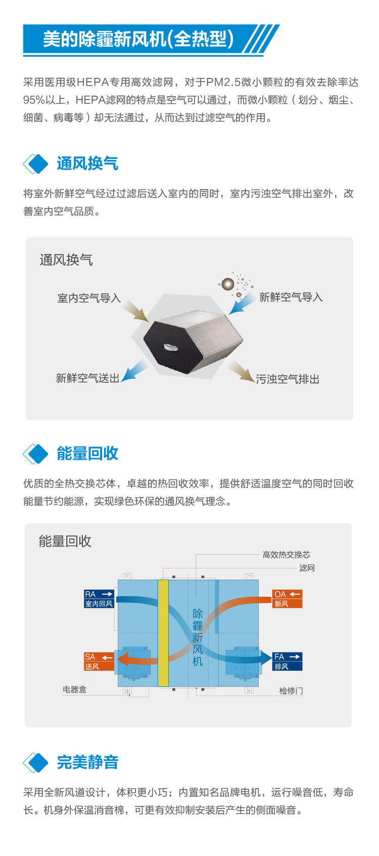 新風機,故名思議,時刻吹送清新空氣。在不能保證室外空氣質量的情況下,凈化系統可以說是新風機的核心系統。美的除霾新風機通過三重過濾網,徹底清除空氣中的雜質和異味,還原清新空氣的本來面貌。