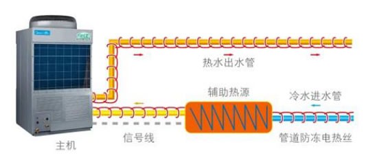 機(jī)組標(biāo)配輔助熱源與管道加熱控制防凍端口,無需增加外部電路板控制,便可實(shí)現(xiàn)對(duì)輔助熱源與外部管道加熱帶進(jìn)行控制,確保用水需求與外部管道防凍的同時(shí)降低成本。
