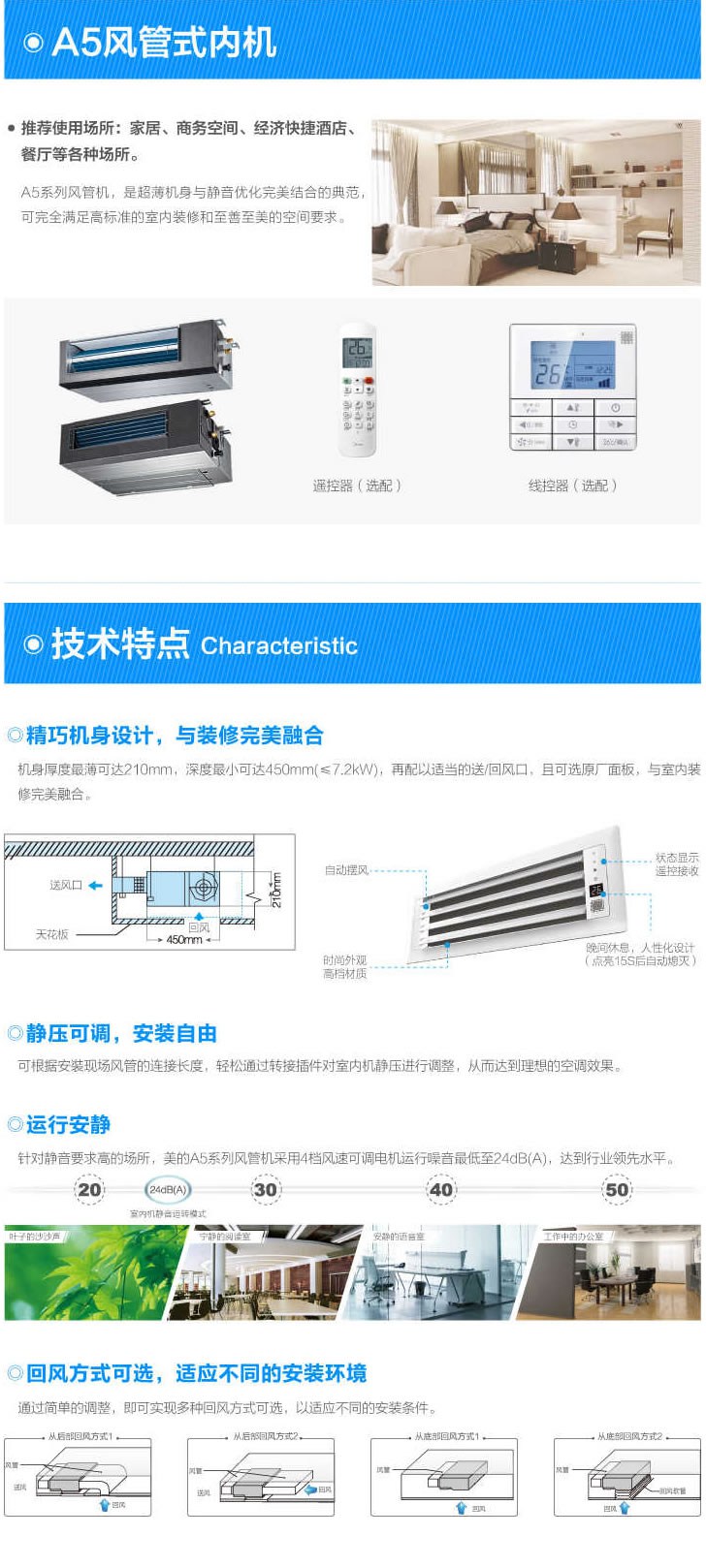 機身厚度僅為24cm,所需的安裝空間小,不受層高的限制,大大節省裝修空間。送回風設計,靈活布置。